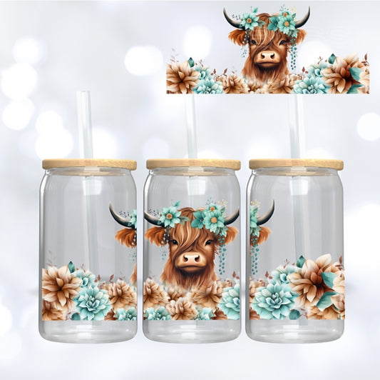 Highland Cow Teal - UVDTF Wrap for cups/hard surfaces sticker