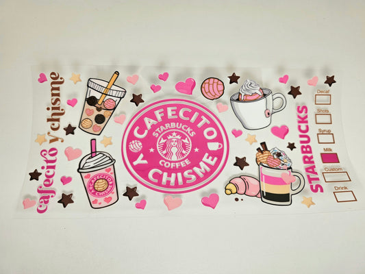 Cafecito y Chisme (Pink) - UVDTF Wrap for cups/hard surfaces sticker