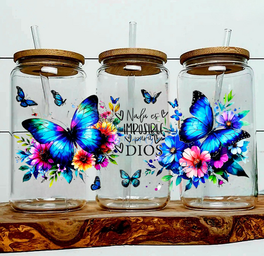 Nada es Imposible Blue Butterflies - UVDTF Wrap for cups/hard surfaces sticker