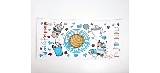 Cafecito y Chisme Blue - UVDTF Wrap for cups/hard surfaces sticker