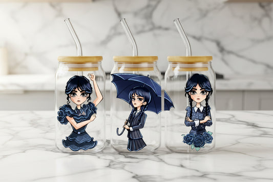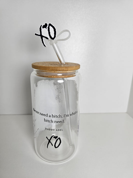 Vaso de vidrio Weeknd de 16 oz con pajita de plástico