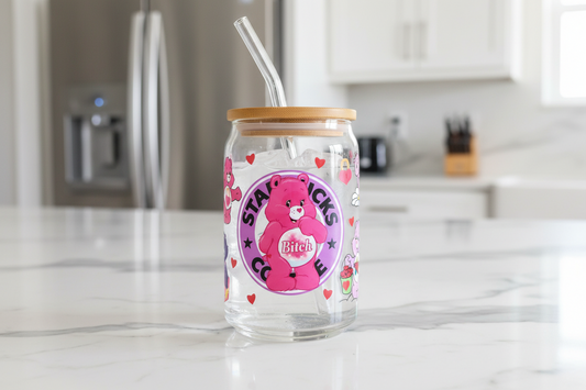 Envoltura UVDTF con osito travieso de Starbucks en color rosa