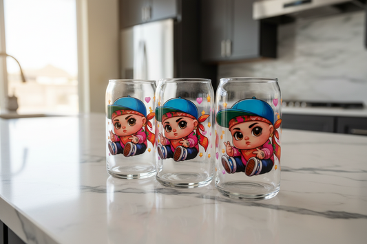Vaso de vidrio OOPSIE de 16 oz con pajita de plástico