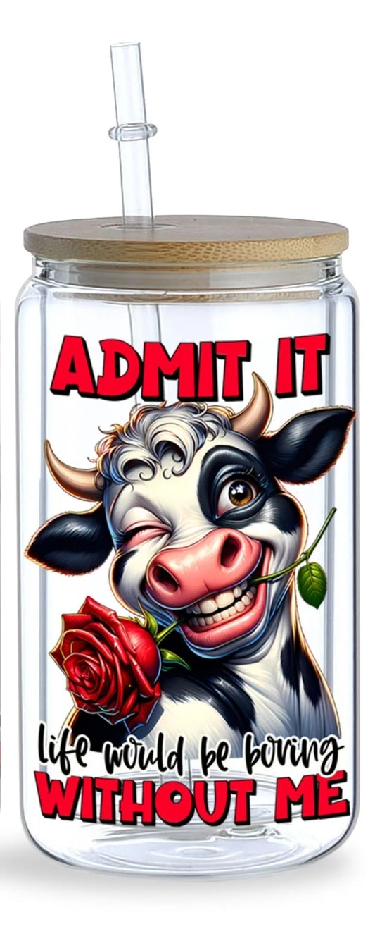 Calcomanía UVDTF de vaca enojada antes del café