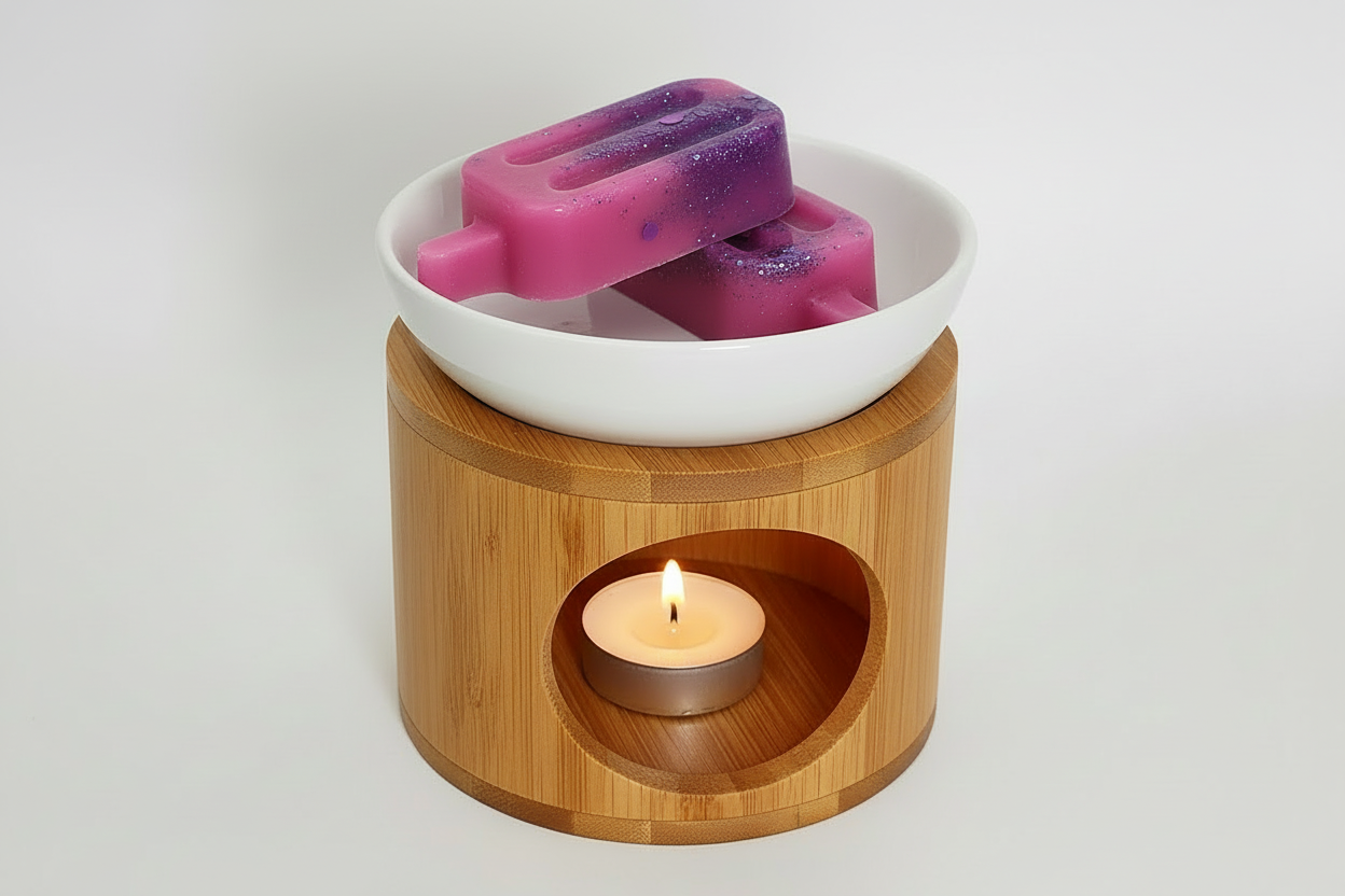 Simplemente use la tarta entera o córtela por la mitad y colóquela en el plato del quemador. Encienda una vela de té para colocarla debajo del calentador o colóquela en un plato calentador de cera eléctrico y enciéndalo.