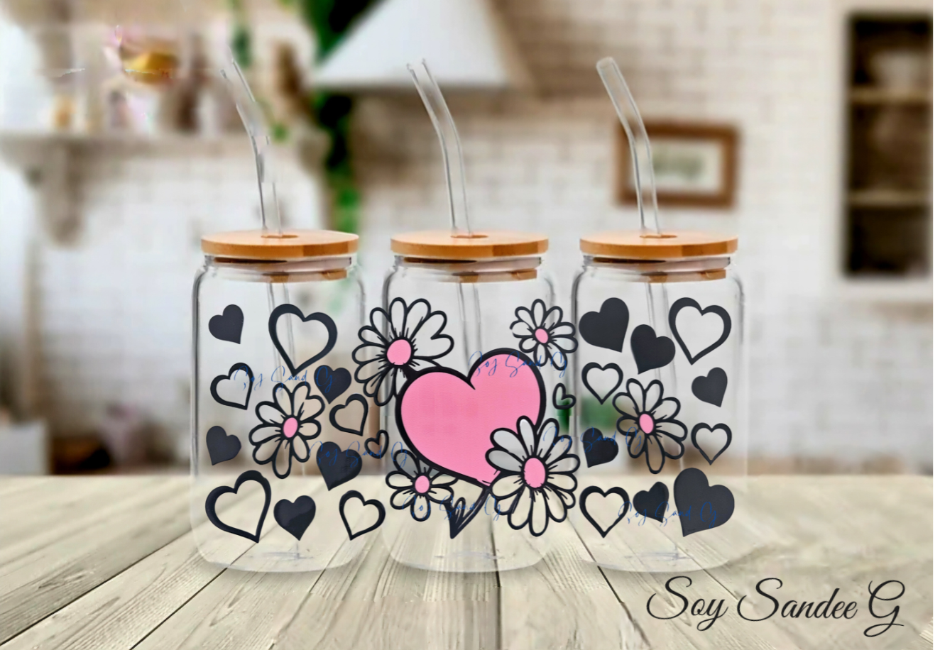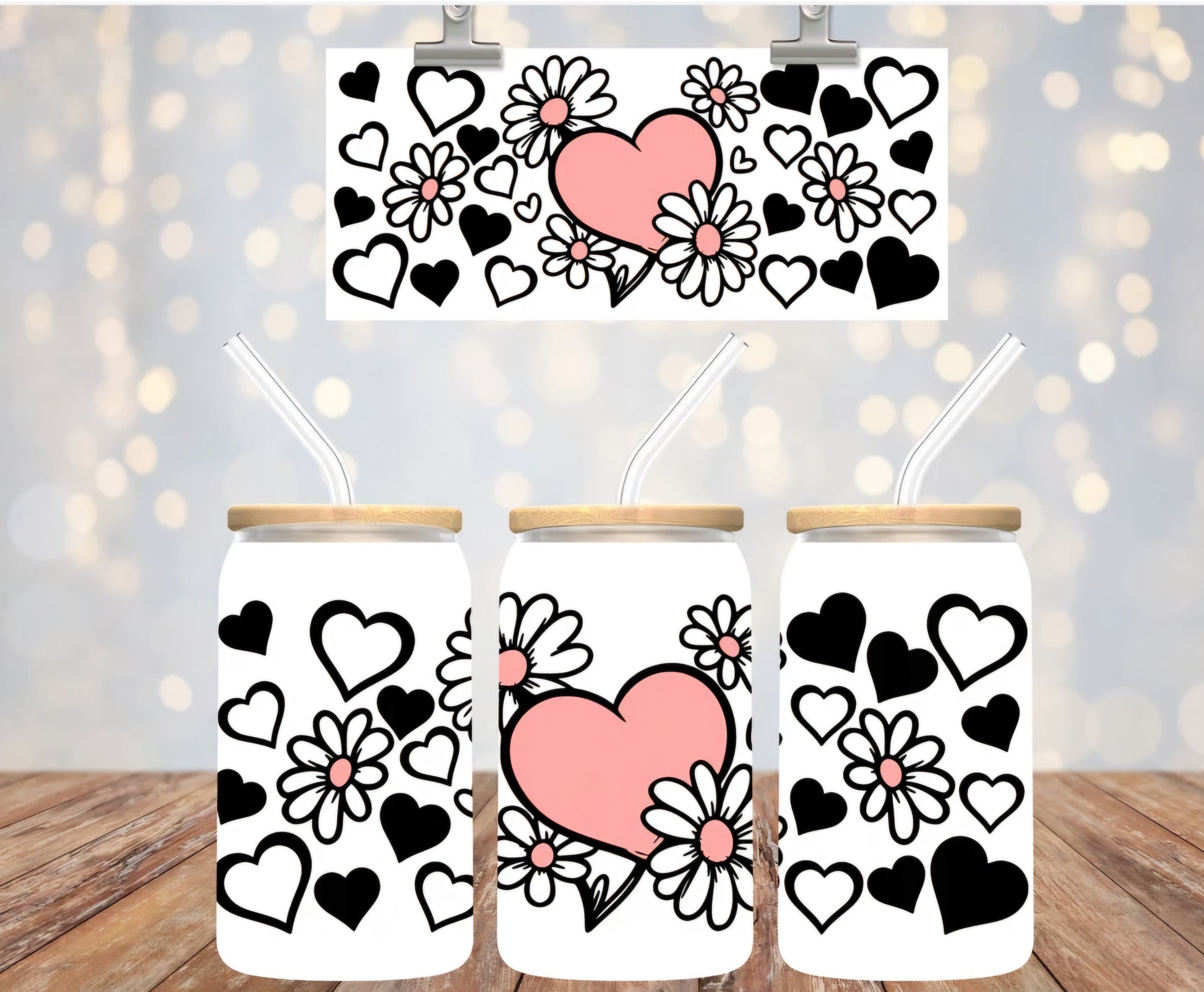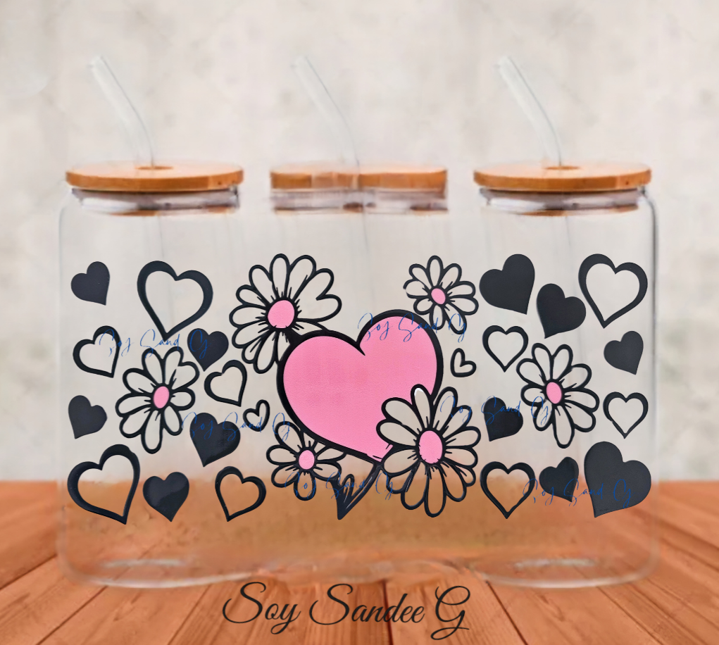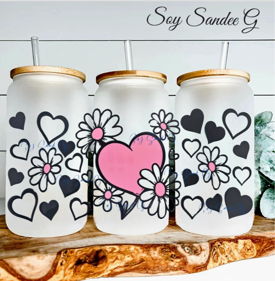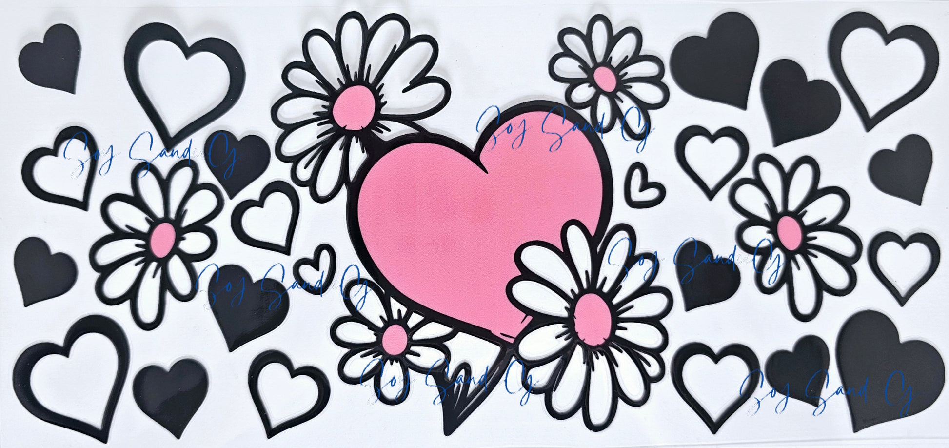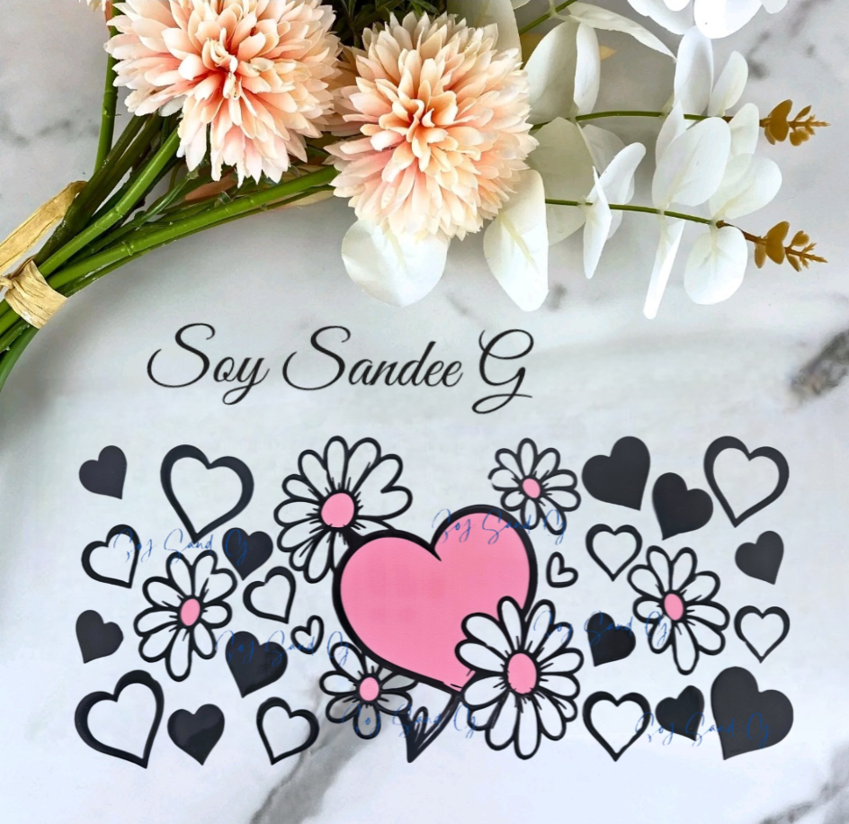 Manta UVDTF de corazones y margaritas