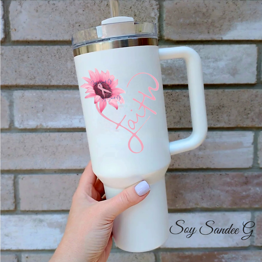 Calcomanía UVDTF de girasol con fe rosa