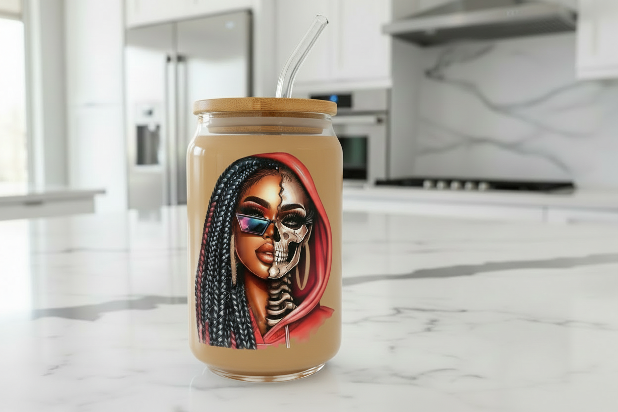 Red Hoodie Braids Skully - UVDTF Decal for cups/hard surfaces sticker