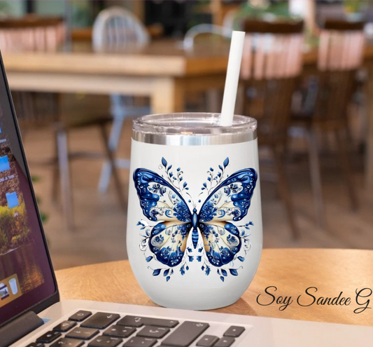 White & Blue Butterfly- UVDTF Decal for cups/hard surfaces sticker