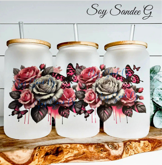 Pink & Gray Roses - UVDTF Wrap for cups/hard surfaces sticker