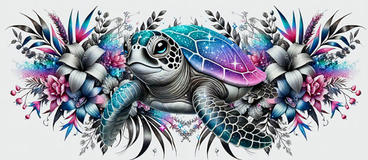 Turtle (Pink, Blue & Teal) - UVDTF Wrap for cups/hard surfaces sticker