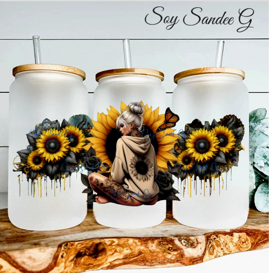 Yellow Sunflower Girl - UVDTF Wrap for cups/hard surfaces sticker