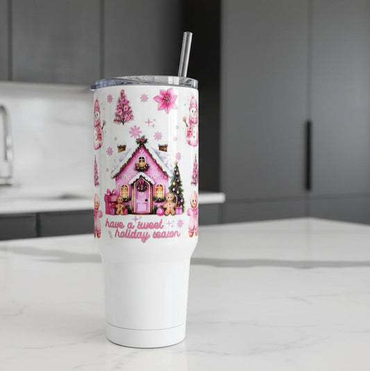 Pink Christmas House & Snowmen - UVDTF Wrap for cups/hard surfaces sticker
