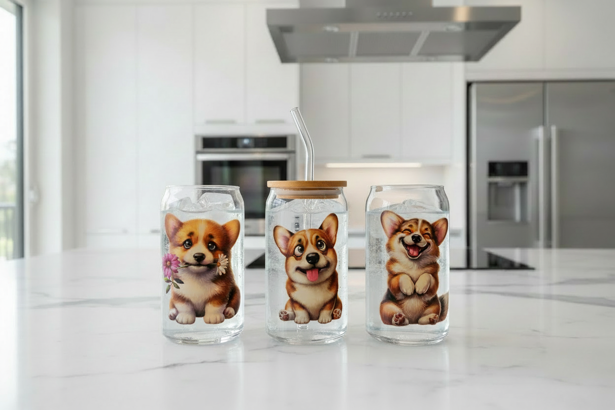Ready to Ship - 16 oz Glass Cup with Plastic Straw - Premade cup