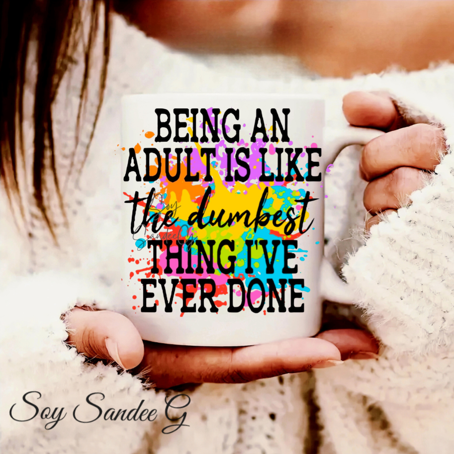 ✨ Transform your hard surfaces with this Being an Adult is Like UVDTF decal! Perfect for cups and other hard surfaces, this sticker measures approximately 4" x 4". It's a fun, vibrant addition to any space. One decal included per order.