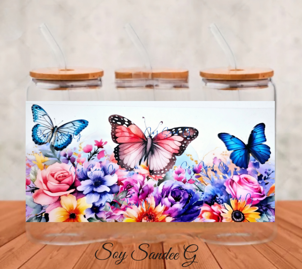 Bright Flowers & 3 Butterflies - UVDTF Wrap for cups/hard surfaces sticker