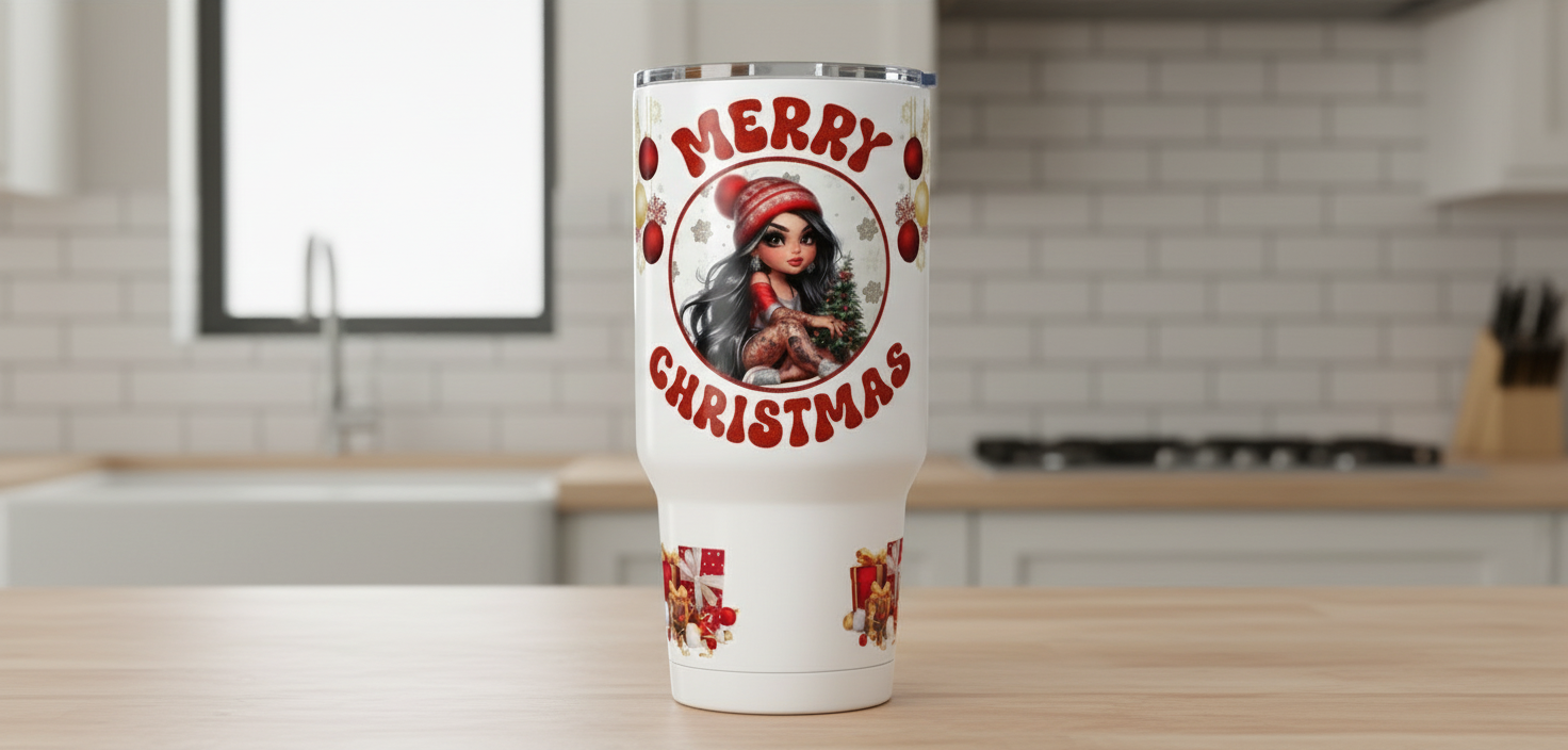 Merry Christmas Red & Gold Ornaments - UVDTF Wrap for cups/hard surfaces sticker