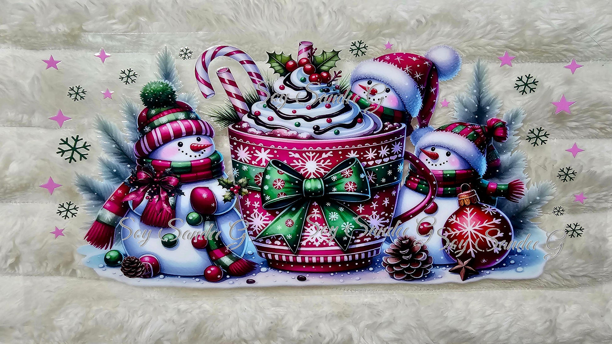 🎄 Peppermint Mocha Snowmen - UVDTF Wrap for Cups/Hard Surfaces Sticker 🎄