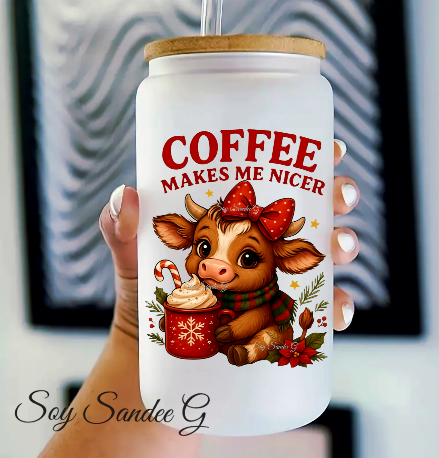 Coffee Makes Me Nicer Cow - UVDTF Decal for cups/hard surfaces sticker