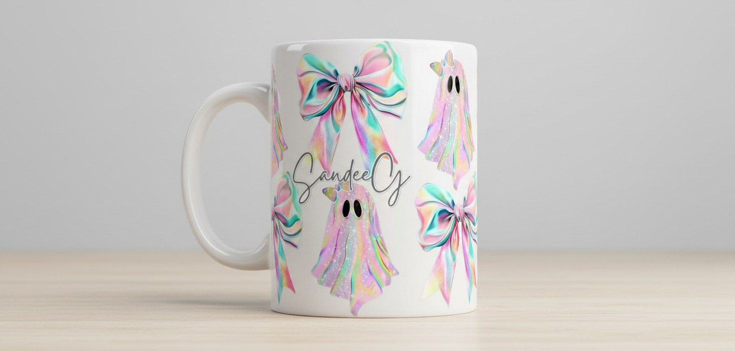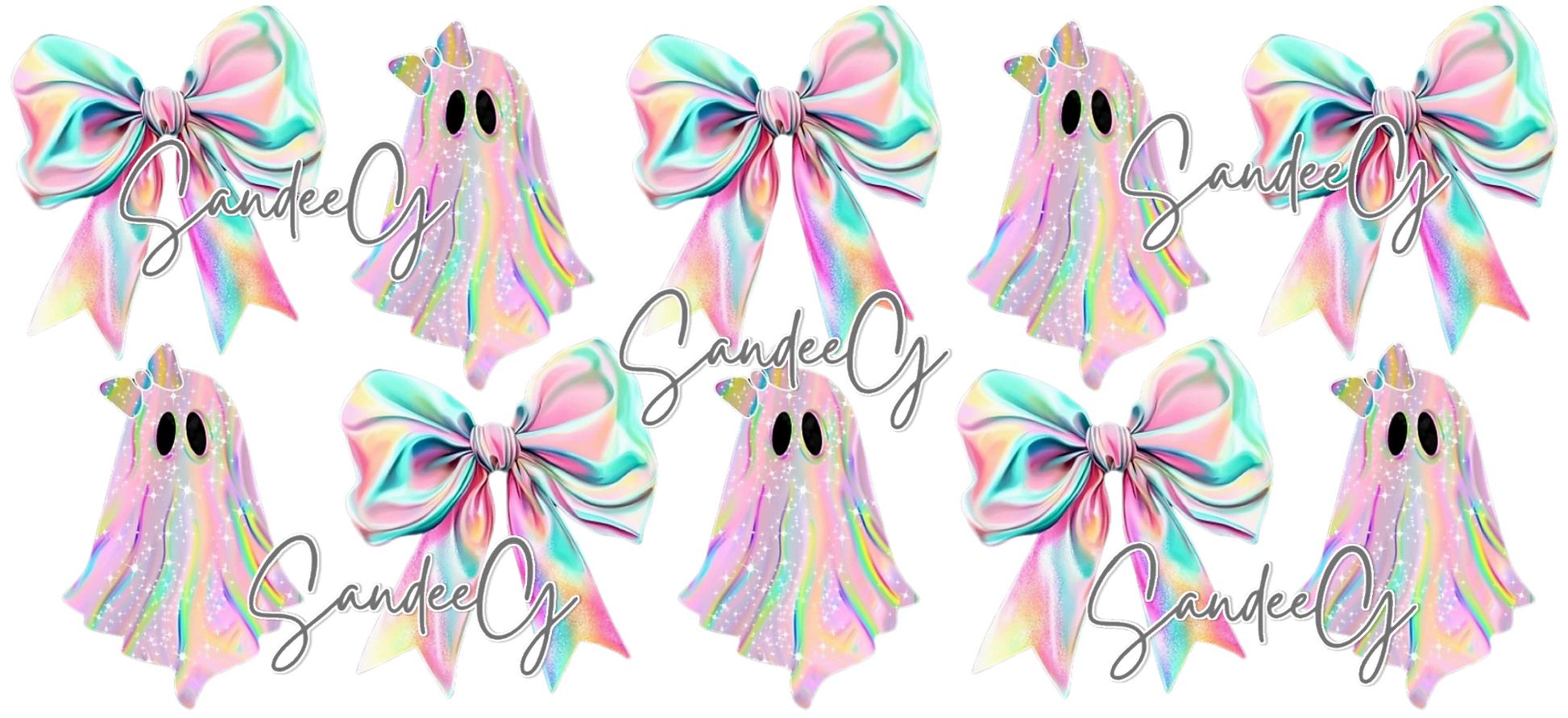 Iridescent Ghosts & Bows - UVDTF Wrap for cups/hard surfaces sticker