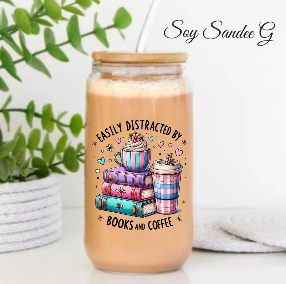 Easily Distracted by Books & Coffee - UVDTF Decal for cups/hard surfaces sticker