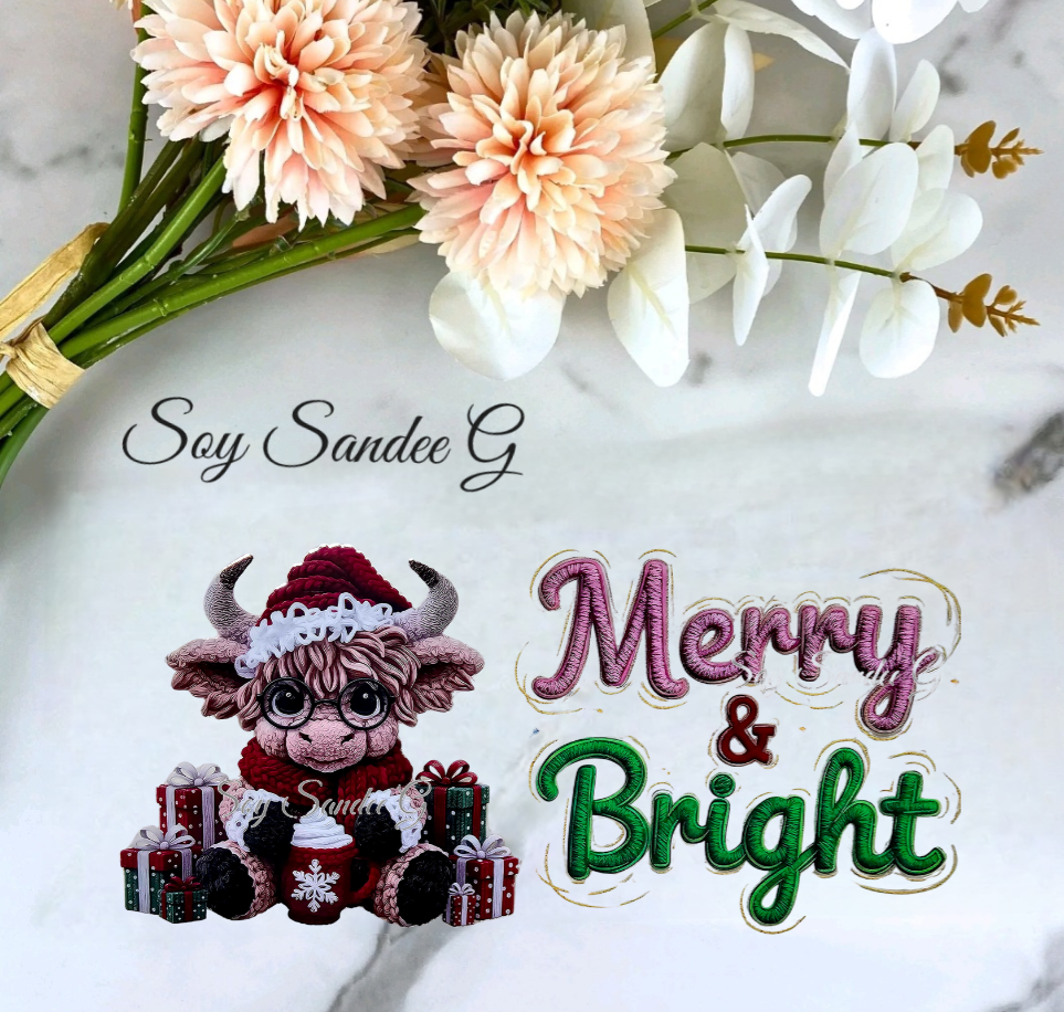 Merry & Bright Embroidered Moose - UVDTF Wrap for cups/hard surfaces sticker