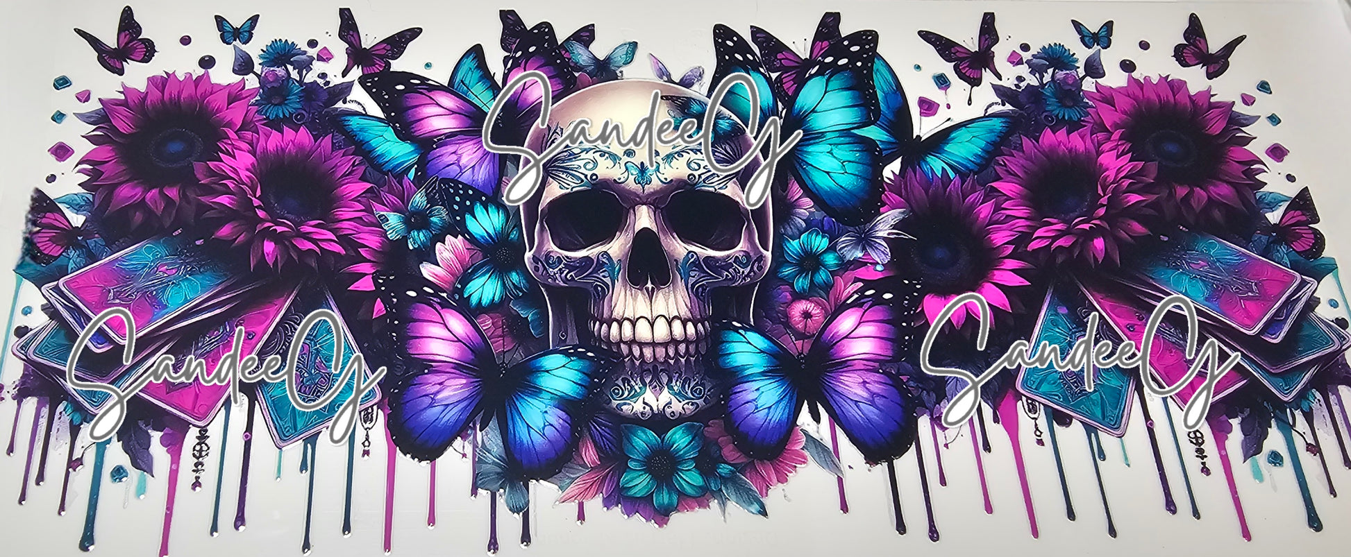 Neon Pink & Teal Skull Cards - UVDTF Wrap for cups/hard surfaces sticker